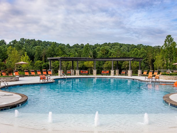 Relax and refresh in our resort-style swimming pool, or lounge on the beautifully appointed deck. Bask in our zero entry pool with water loungers, tanning ledge, and fountains. Get active in the sport depth area. Ready for some shade? Get comfortable and enjoy the view from our terrace lounge, or catch a game in the Pavilion and cozy up to the fireplace.